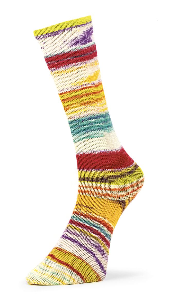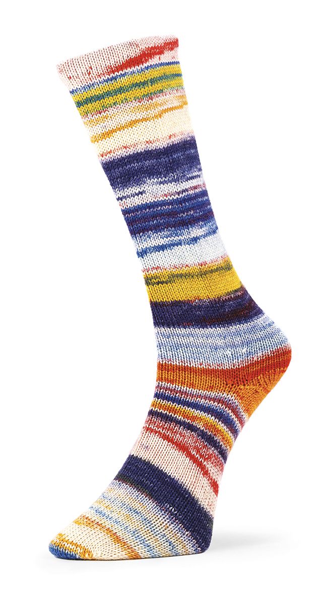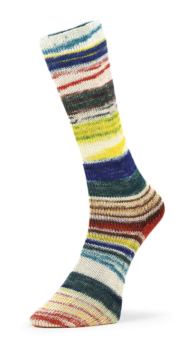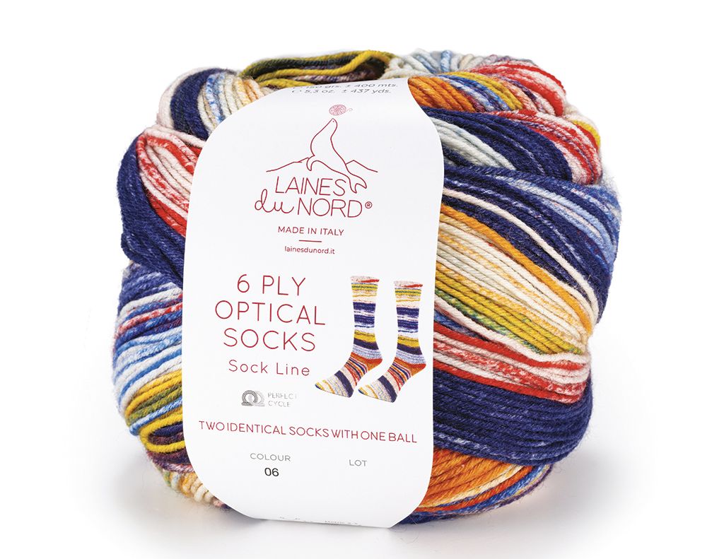 Dickes und warmes Garn, perfekt für robuste und gemütliche Socken. Die malerischen Farbkombinationen, aus mulesingfreier Schurwolle, chlorfrei behandelt, ist ideal für einzigartige Accessoris. Der „Perfect - Cycle“ sorgt für regelmäßige und kreative Muster und macht die 6 Ply Optical Socks zu einem Garn, welches man entdecken sollte.