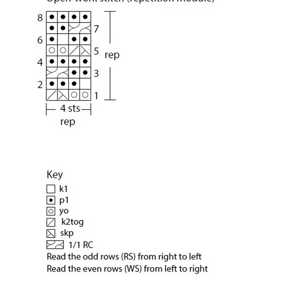 5° f.: 3 rov, 2rovins, 1dir, 1 Get, 1 acc, 2ins, 1 GetD, * 1 acc, 2ins, 1 GetD *, rip ** fino a 8 m dalla fine, 1 acc, 2 ins, 1 GetD, 4 rov.