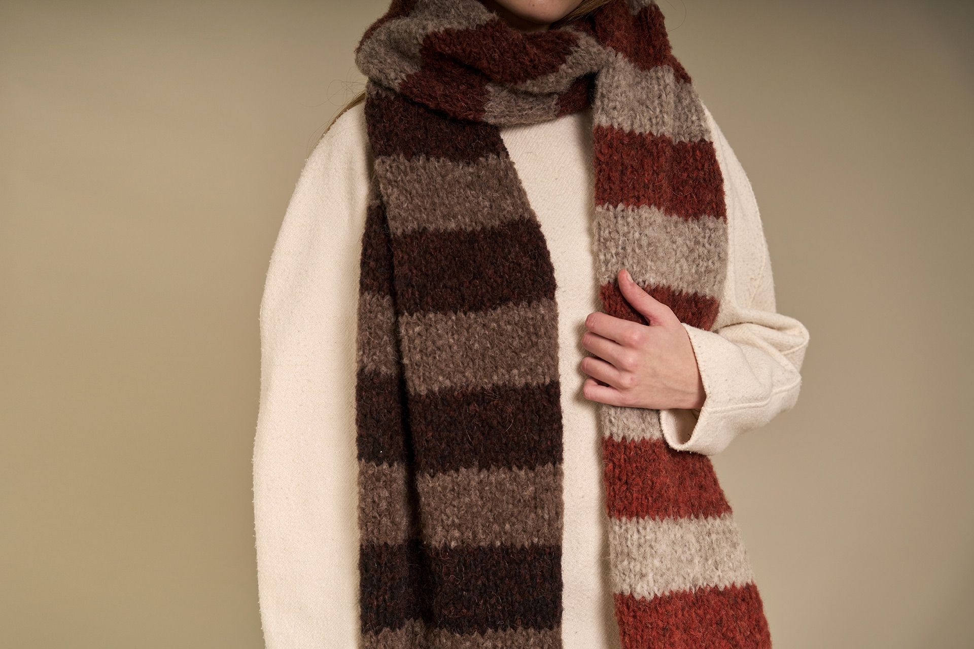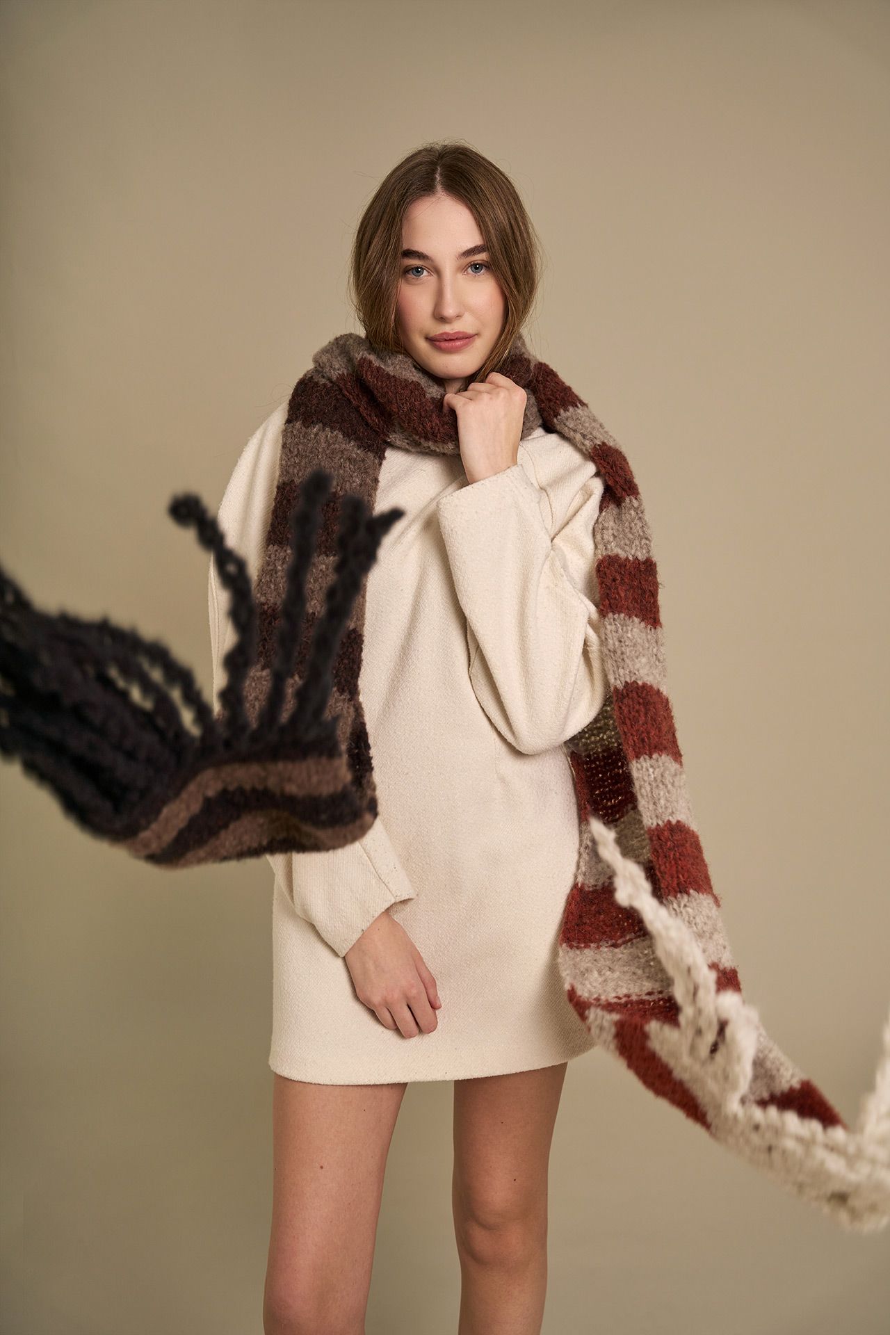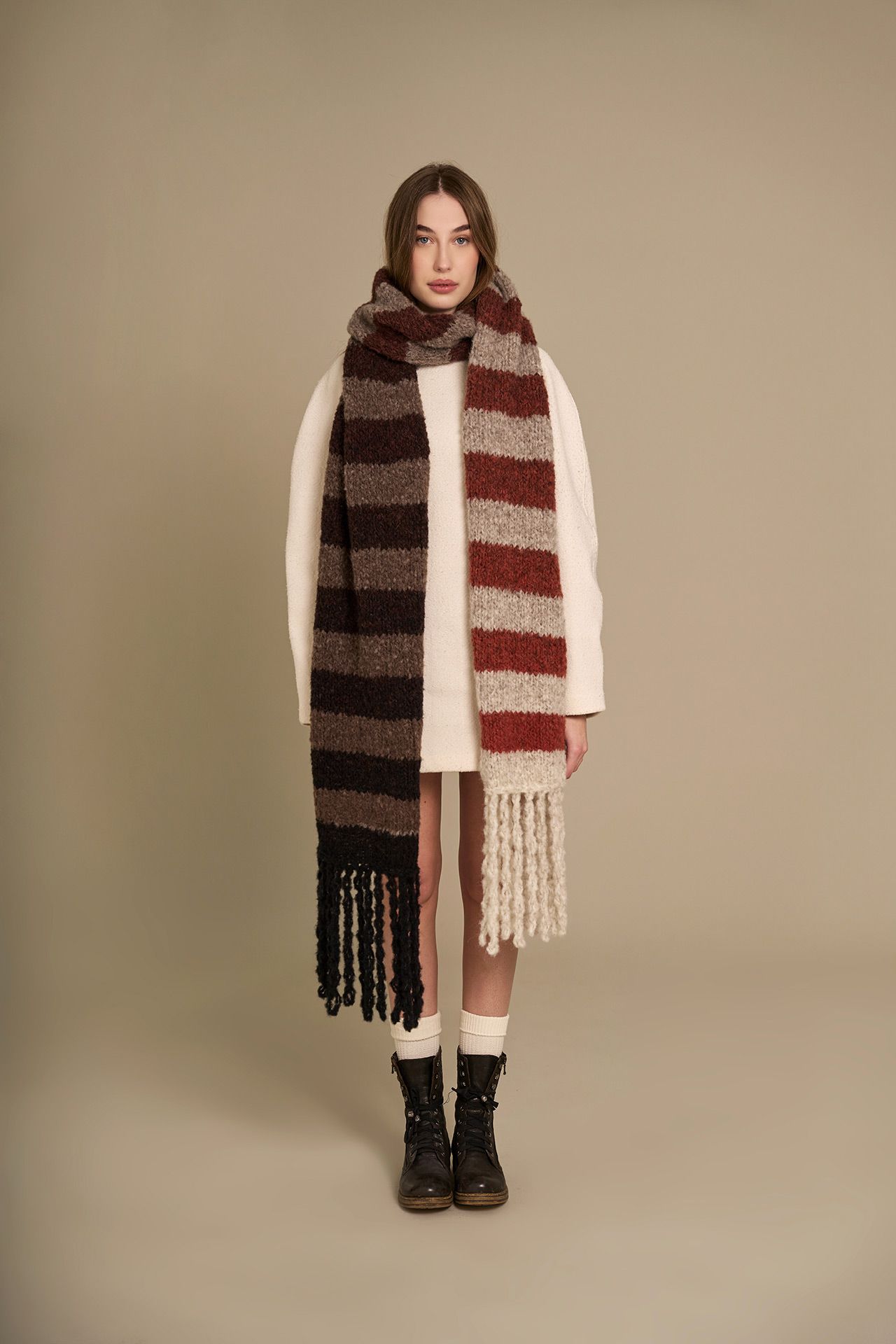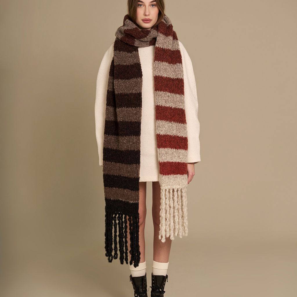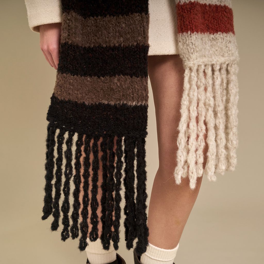 rip ** altre 15 volte, al termine, tagliare il filo e chiudere. Realizzare le frange sul lato opposto della sciarpona con lo stesso metodo, utilizzando il colore del bordo corrispondente.